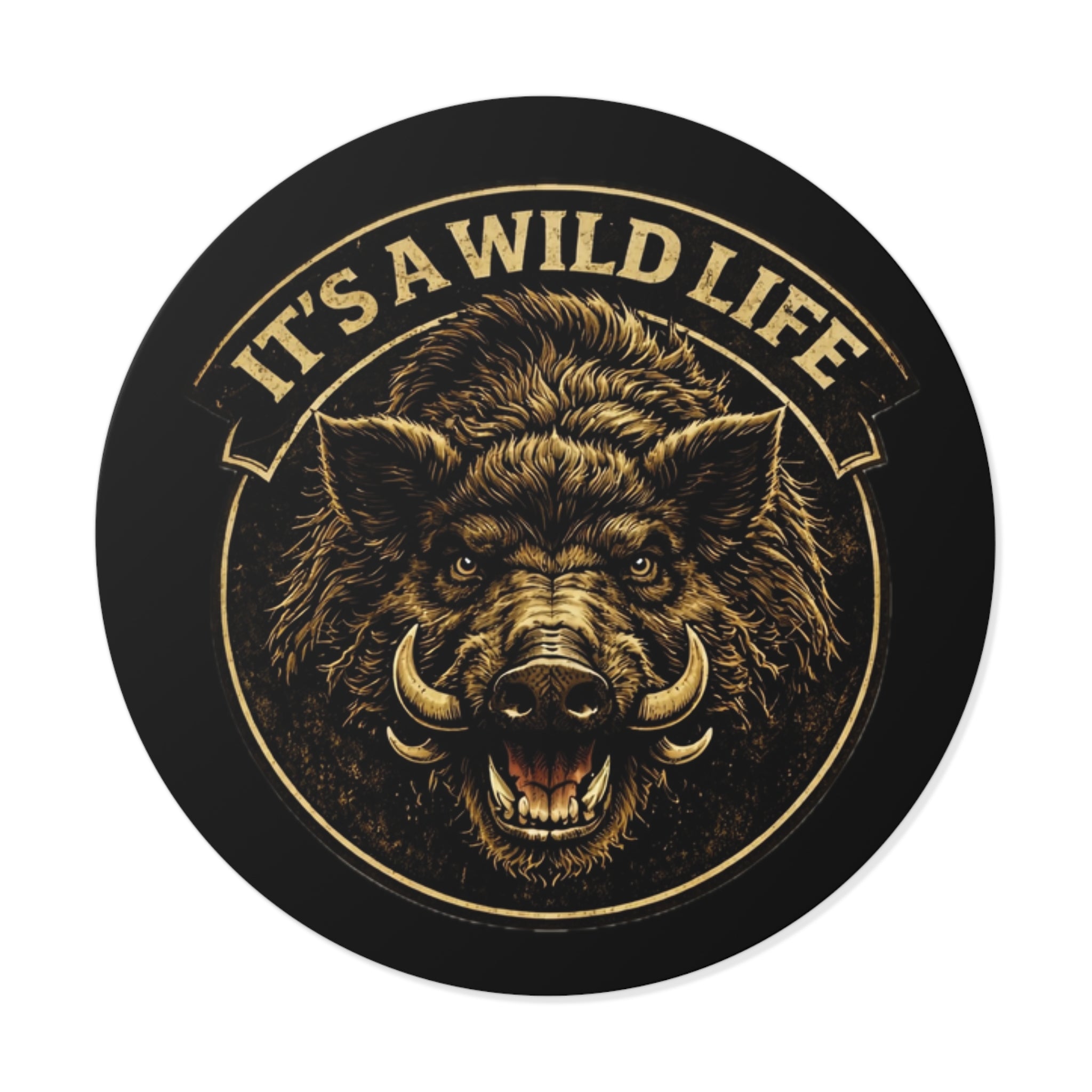 Wild Boar Round Vinyl Sticker — "It's a Wild Life" Graphic Sticker for Hunters & Outdoorsmen
